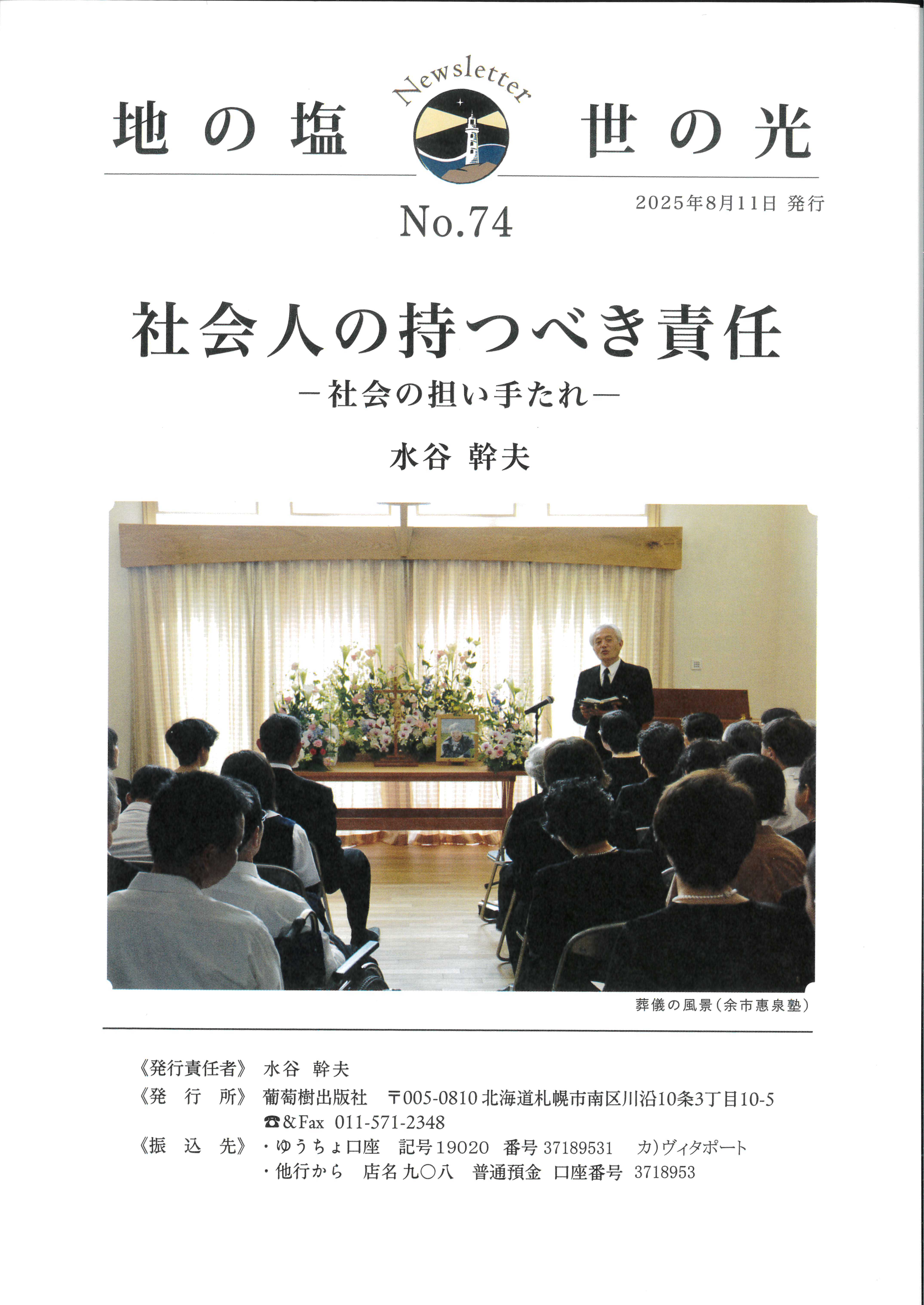 ニュースレター「地の塩 世の光」No.74『社会人の持つべき責任』
