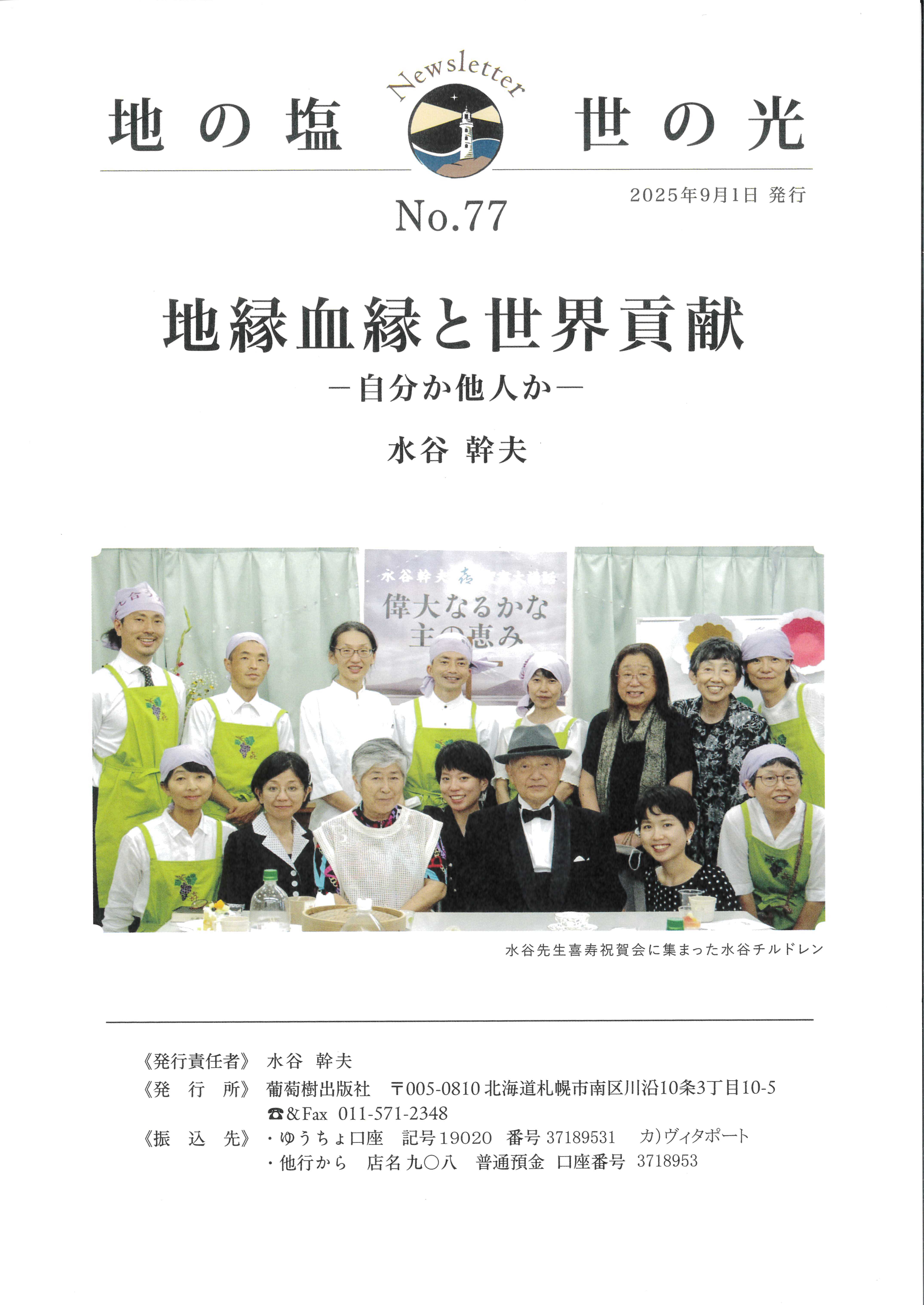 ニュースレター「地の塩 世の光」No.77『地縁血縁と社会貢献』