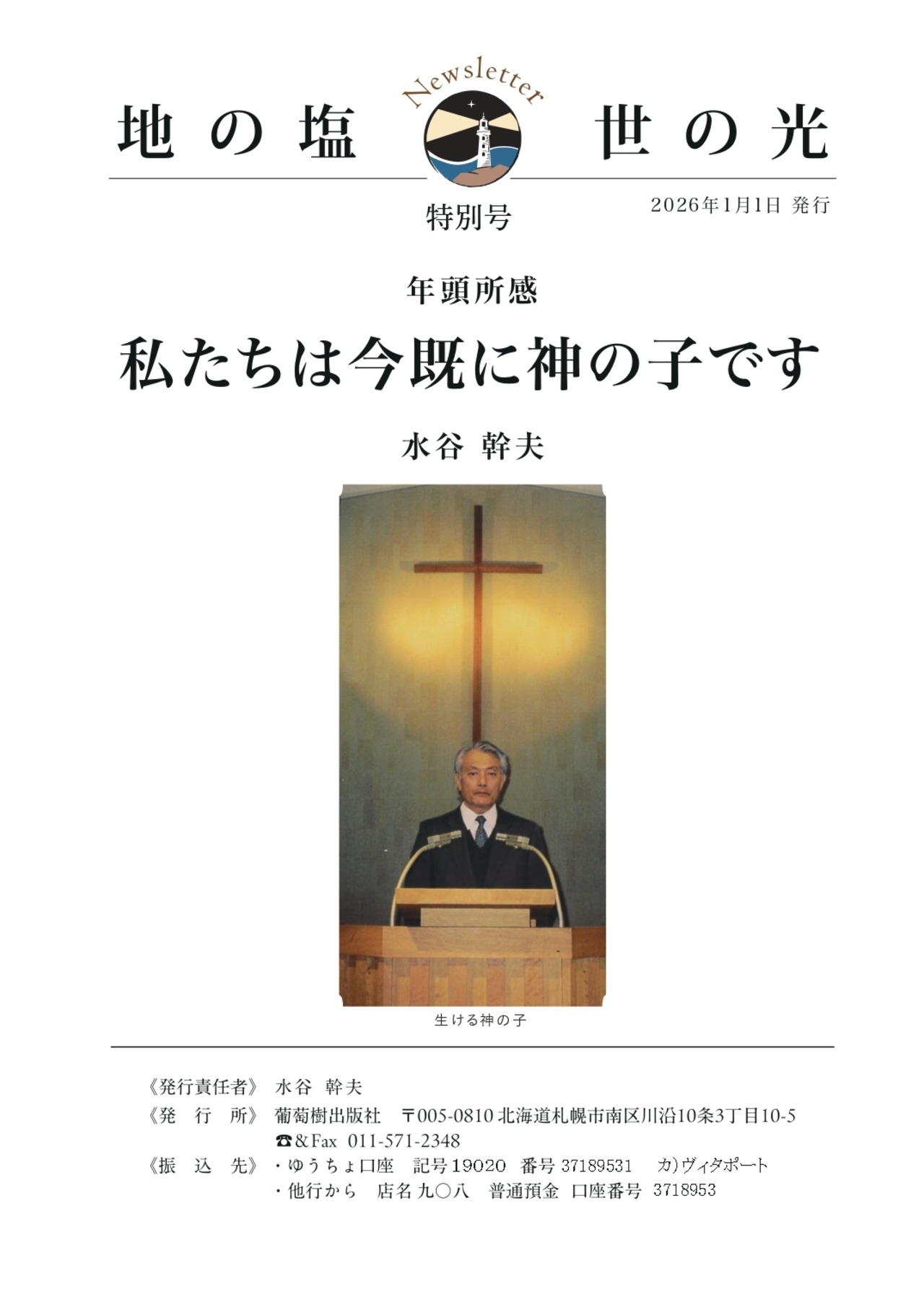 ニュースレター「地の塩 世の光」特別号『年頭所感 私たちは既に神の子です』
