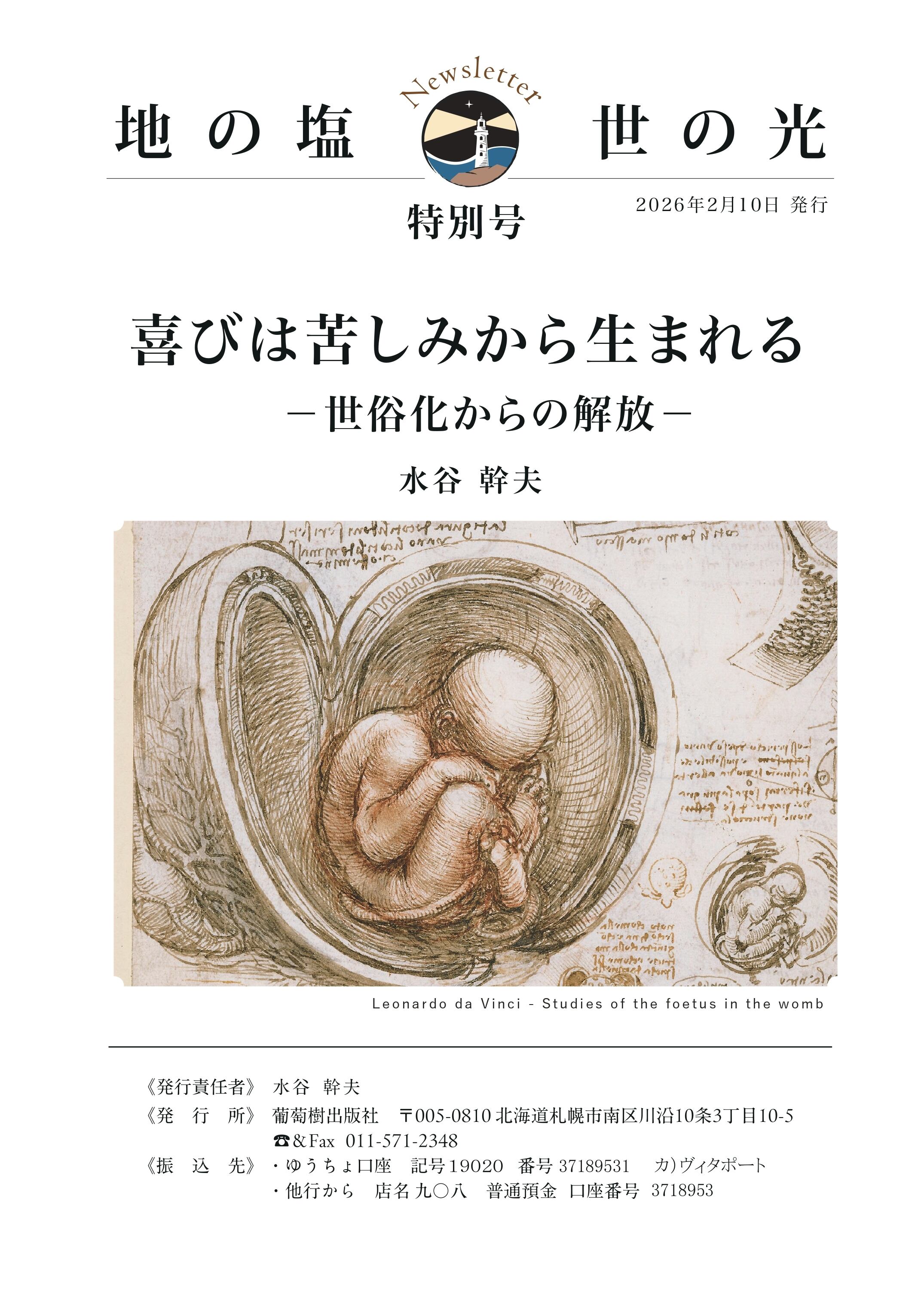 ニュースレター「地の塩 世の光」特別号『喜びは苦しみから生まれる―世俗化からの解放-』