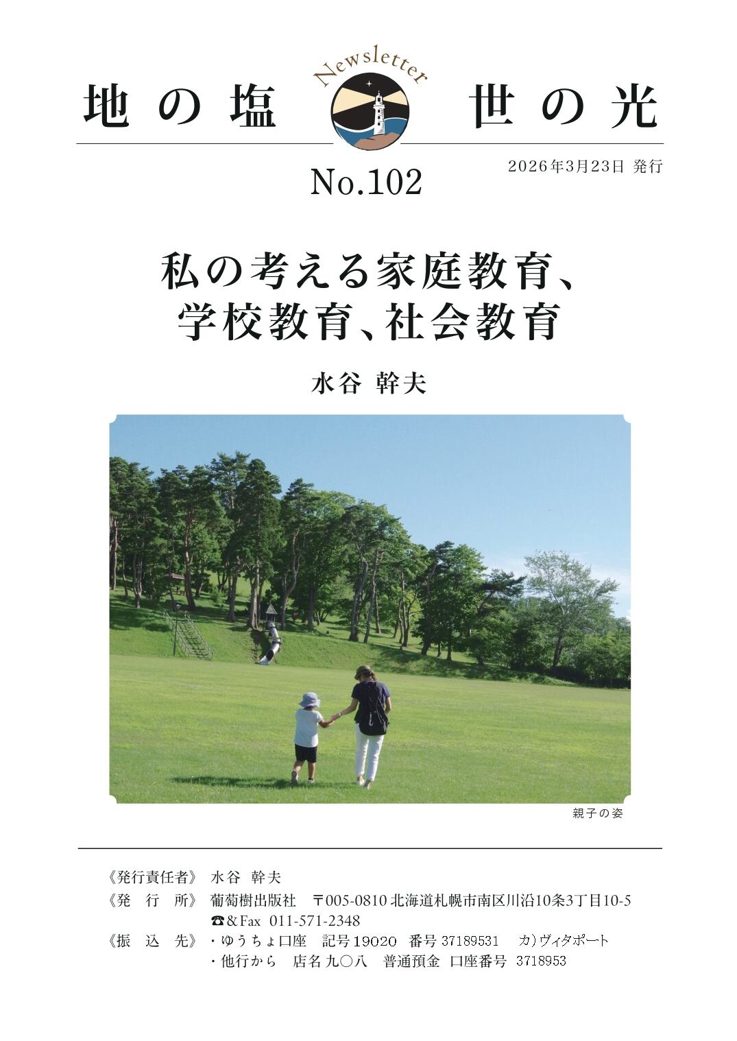 ニュースレター「地の塩 世の光」No.102『私の考える家庭教育、学校教育、社会教育』