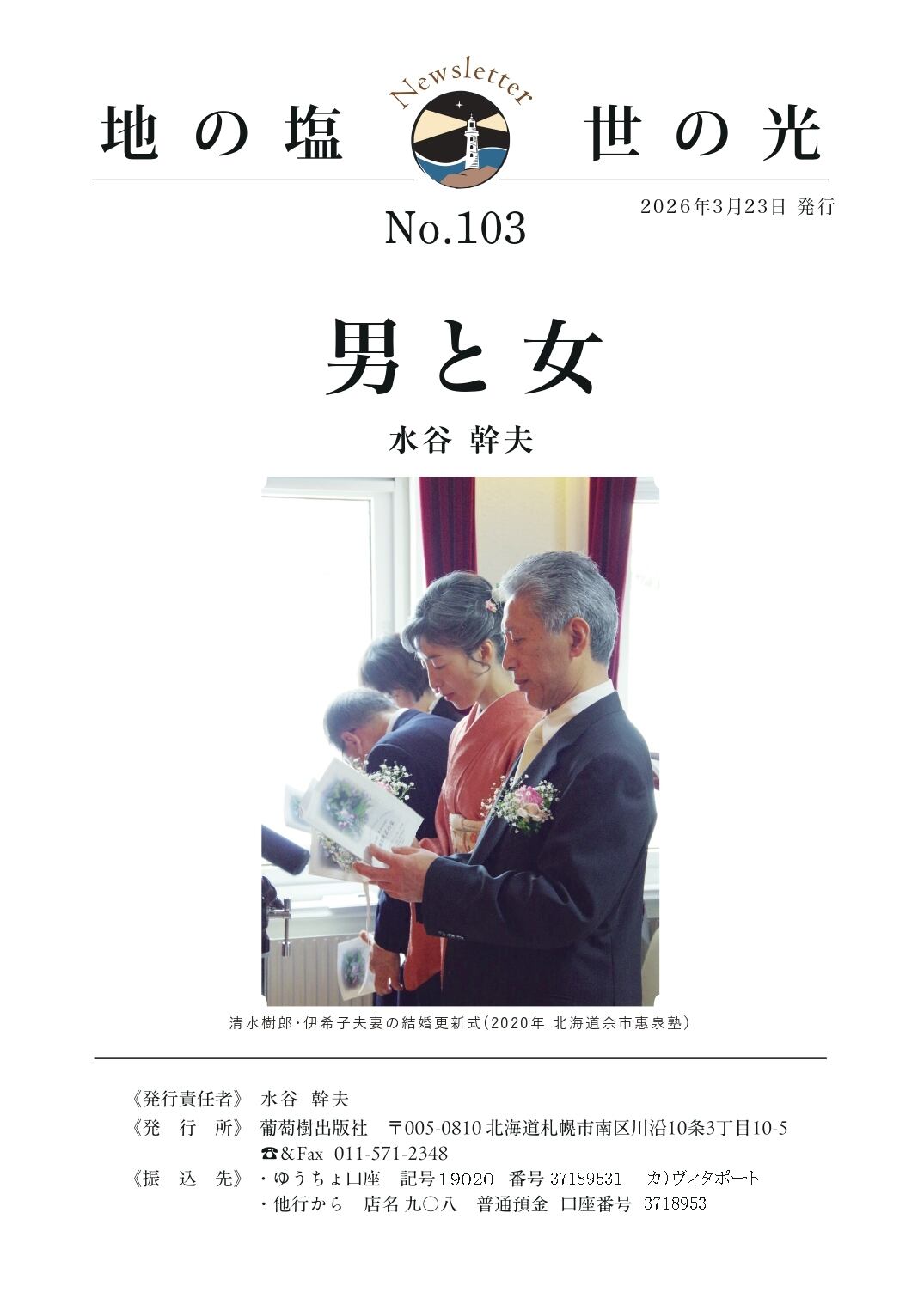 ニュースレター「地の塩 世の光」No.103『男と女』