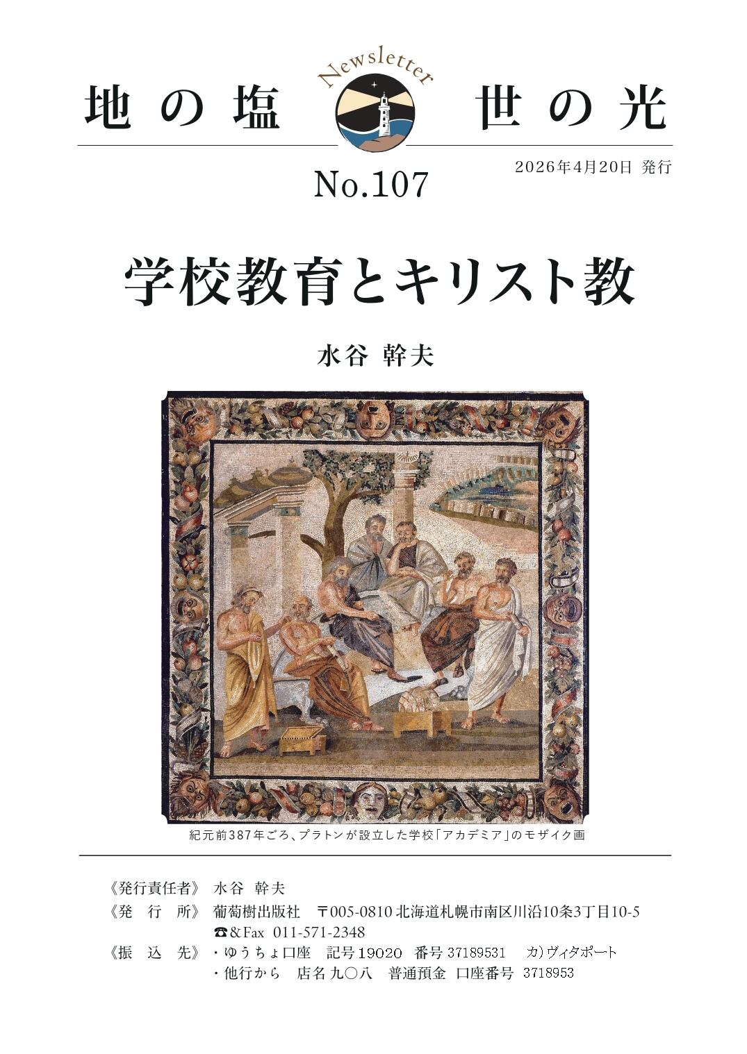ニュースレター「地の塩 世の光」No.107『学校教育とキリスト教』