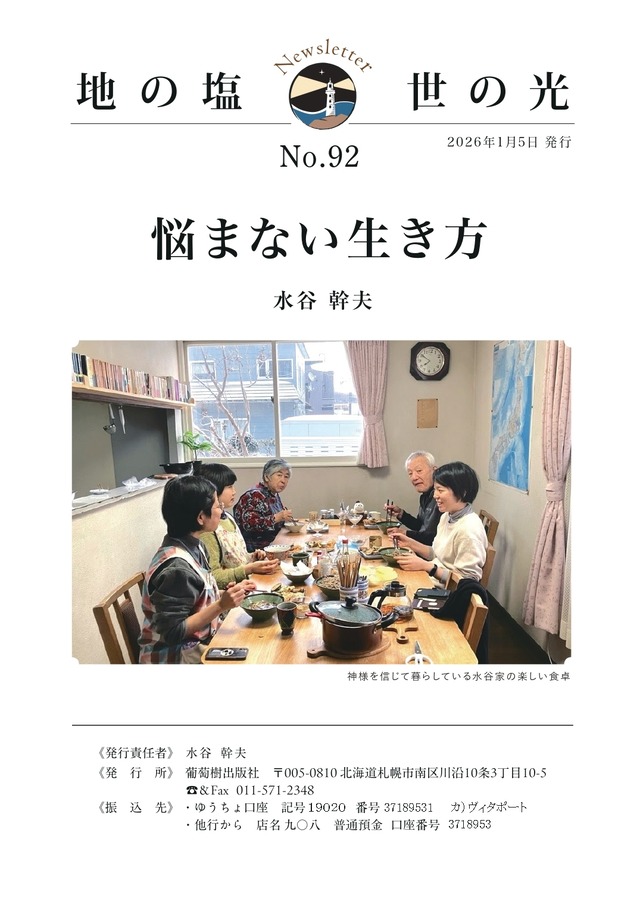 ニュースレター「地の塩 世の光」No.92『悩まない生き方』
