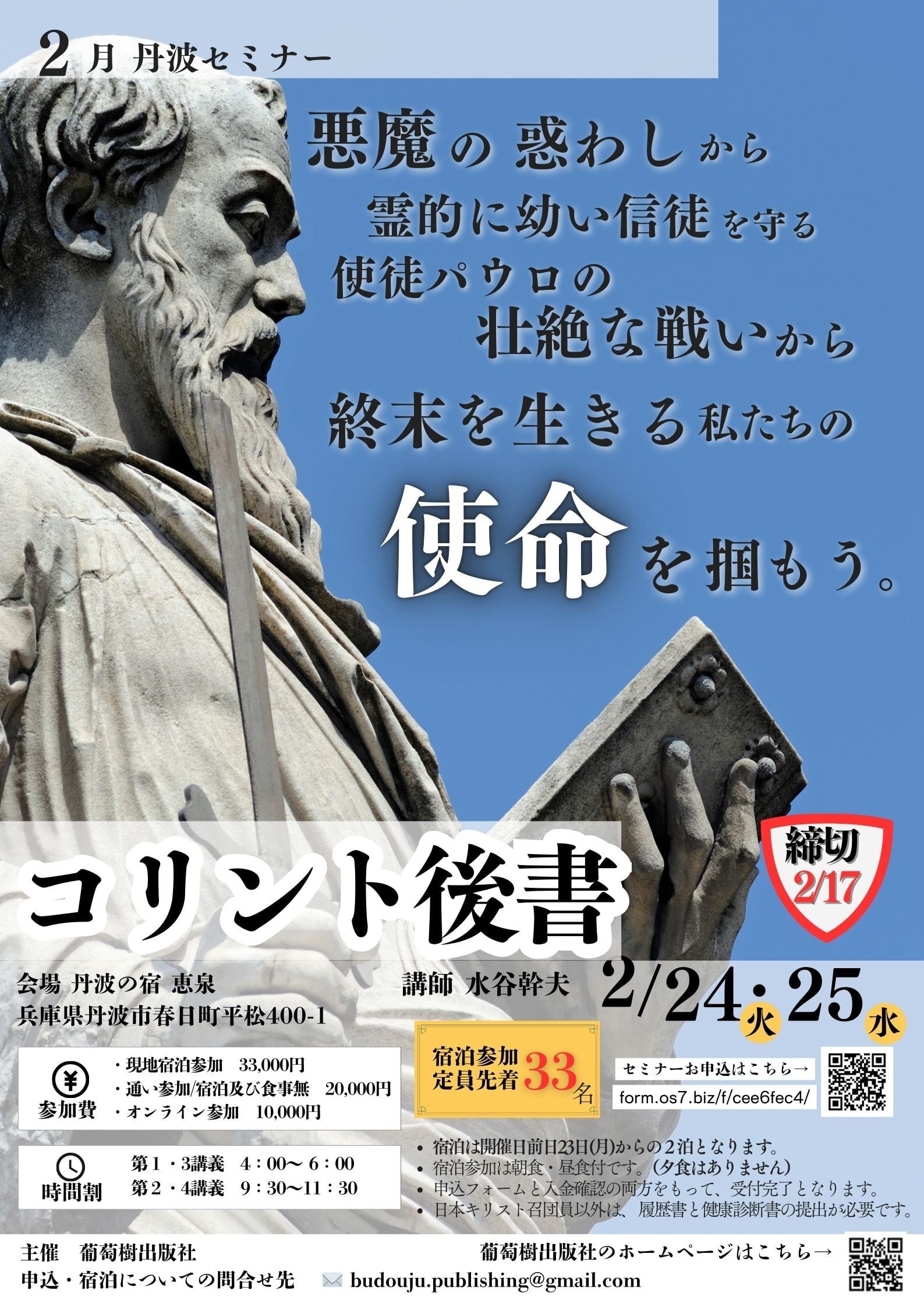 水谷幹夫先生の聖書講義を生で受講し、質疑応答ができる貴重な機会です。